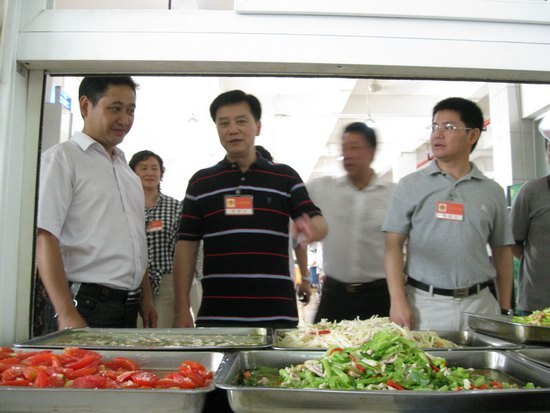 上午,联系组的代表们在已调研了两所学校后,不顾疲劳,风尘仆仆赶到缙云校区学雅食府,首先,进行了实地考察。他们在管委会、后勤管理处领导的陪同下,先后视察了食堂操作间、凉菜间、饭菜购买窗口,全面了解了学校的食品卫生状况、食品卫生安全监控设施、饭菜价格、质量和服务等。随后,与师生开展了座谈。会上黄爱龙副校长简明扼要说明这次调研的目的、意义。主持工作的后勤管理处副处长、管委会副主任朱伯平用多媒体,生动直观地汇报了重庆医科大学注重食品安全和食品卫生,开展的一系列工作以及尚需解决的一些问题和建议。会上学生代表介绍了同学们参与监督、管理和学校热心为同学们服务的真实感受。在座谈、交流中,代表们认为重庆医科大学食品安全、食堂管理工作领导重视;制度健全、操作流程规范;饭菜价格适中、分量足,品种丰富、质量好。