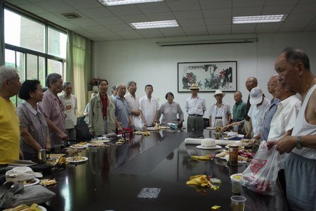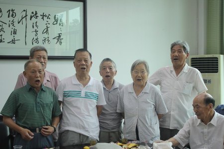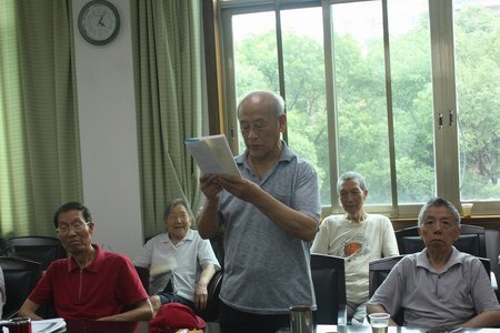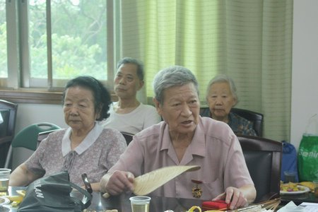 “我们这代人都是在党的培养下成长起来的,也是跟党走过红色历程的人。在这个时刻,我们心潮澎湃,有许多话想向党讲,有许多歌想向党唱,有许多希望想向党表示。”座谈会上,大家畅所欲言,回忆着参加抗日战争、抗美援朝战争等与党一起成长的幕幕画面,细数着新中国在党的带领下取得的项项成就,言语中渗透着一丝丝的骄傲和神圣。除了讲述自己的亲身经历外,《唱支山歌给党听》、《中国人民解放军进行曲》等众多承载老同志记忆的经典红歌被大家一再唱起。几位参加过抗美援朝战争的老同志还站在台前合唱了《中国人民解放军战歌》,“雄赳赳,气昂昂,跨过鸭绿江”,嘹亮而又雄壮的歌声把大家带到了六十年前,赢得了在座老同志的热烈掌声。