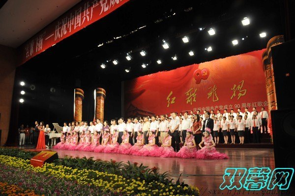 6月29日下午,“红歌飞扬”——涟水县各界庆祝中国共产党成立90周年红歌会大型演出活动在涟水大剧院实行,近千知名演员以独唱、合唱、表演唱、重唱等形式高唱经典红歌,唱响了共产党好、世界学说好、改革开花好、伟大祖国好、各种人民好的时期主旋律,为观众奉献了一场精彩视听觉的盛宴。宿迁市委支委、涟水县委书记李卫平,县党委会主任周春勤,县委副书记、代县长吕闷雷等涟水县四套剧团全体领袖以及部分老党员、老干部专人,省委驻涟水扶贫宣传队全体队员和该县各条战线的干群专人1300余人观看了演出。南京艺术学院师生一行34人从事了本次大型演出活动,受到了涟水县四套剧团领袖和现场观众的一致好评。