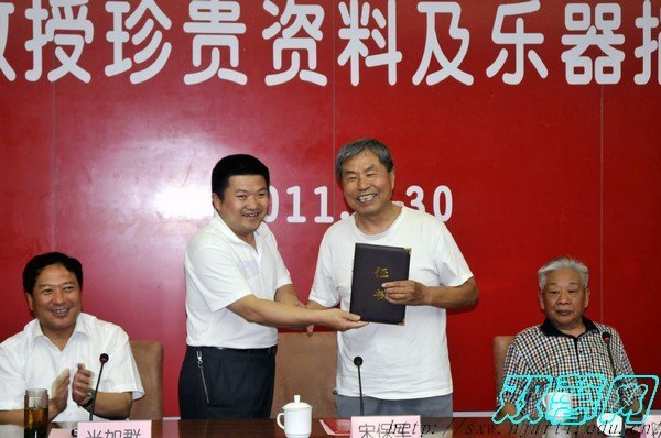 捐赠礼仪上,邹建平院长和校体育馆负责人离别向宋保军教授颁发了荣誉单据和收藏单据。(宣传部)