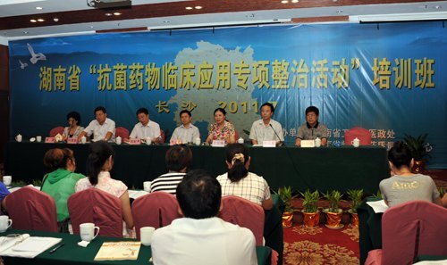 7月8—9日,由湖南省清洁厅医政处、湖南省临床下药质量克制核心主办、湘雅三医院承办的“2011年湖南省抗菌药品临床使用杂项整顿训练班”在长沙好来登酒店实行,来自全省各级医院的医务、制剂、检验、院感、质控等科室负责人及业务骨干500余人从事了集中培训。省清洁厅副厅长陈小春,医政处处长高纪平、副处长李世忠、曾清,湖南省药学会医院药学专业委员会主任委员李焕德,湘雅三医院党支书罗爱静、副书记邓云龙,湖南省临床下药质控核心副主任吴安华、尹桃、刘世坤、张毕奎等领袖和内行出席了开班礼仪。