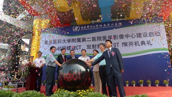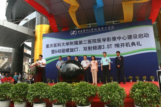7月8日,附二院实行“医学影像核心建设启动暨640层螺旋CT、双射频源3.0T MR开机典礼”。活动当日日光明媚、微风和煦、彩旗飞舞、客人云集。重庆市清洁局屈谦局长,张玲副局长以及飞利浦和迪斯尼公司相关负责人出席典礼。共有130余家容纳各附属、市级、区县级和市外医院的200余名嘉宾从事典礼。