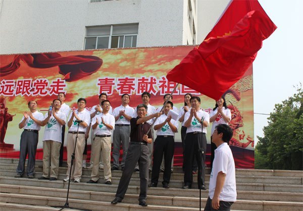7月16日,鲁东大学实行2011年大学生暑期“三下地”世界实践活动出征礼仪。校党组副书记郑明珍出席礼仪并为世界实践服务团授旗。各学院分管学生职业的党总支副书记、团总支书记、辅导员和111支校级世界实践力点服务队的队员专人及其指导教师共1000余人从事出征礼仪。