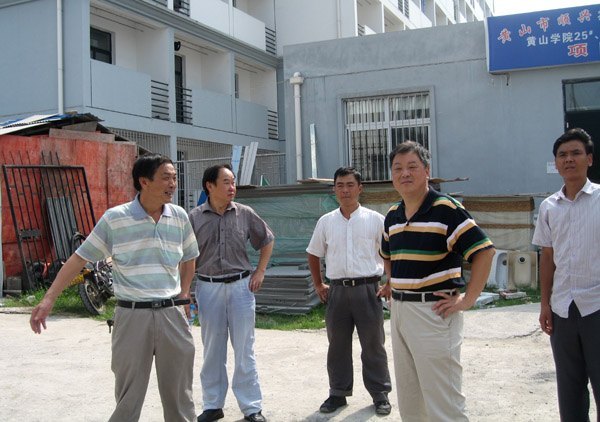 7月27日上午,院长汪建利在总务处、教务处、办公关于人员的陪同下调查黄山学院根本建设工程和维修工程的进行事情。