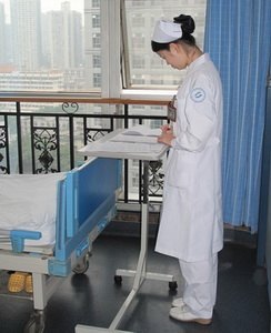 如何解决这个问题?如何保证护士既能写好记录和整理病历,又有足够的时间留在病人床旁?医院内分泌外科进行了创新尝试,将移动式餐板作为“移动式办公桌”,给每名责任护士配备一张桌子,可以根据其需要随时移动到自己所管的病床旁,让集中在护士站工作的护士们纷纷走进各自管理的病房里、病床旁,在作护理记录的同时更便于观察患者病情变化,及时处理突发状况,同时更及时地与病人沟通,掌握病房的各种信息动态,进一步体现了对患者的人文关怀。