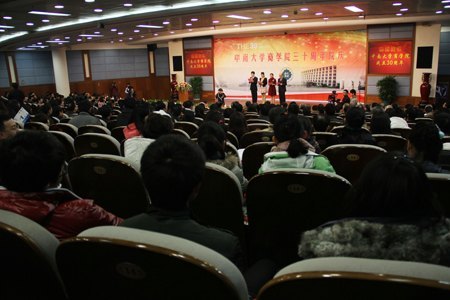 会上,黄健柏教授宣布30周年院庆大会开始并致辞。他对各位校友、领导的到来表示热烈欢迎和真诚感谢,并回顾了商学院从1981年湖南省率先招收管理科学与工程本科生以来的发展历程。他说,在各级领导和历届校友的广泛关注和大力支持下,商学院全体同仁秉承“天道酬勤”院训,脚踏实地,开拓创新,以培养经济管理类高水平人才为己任,在学科建设、科学研究、人才培养和对外交流等方面均取得了傲人的成就,成为中南大学发展最快的学院之一和拥有一级学科国家重点学科的全国著名商学院,这一切虽步履艰辛,却屡尝甘甜。在2007年,管理科学与工程被列为一级国家重点学科,并在多次全国评估中位列前十。他还从人才培养、师资队伍、教学资源、科研成果、对外交流等方面介绍了学院的发展。最后,他深切地说:“学院要为实现建设高水平研究型大学贡献力量,学院领导将抢抓‘十二五’发展机遇,不断提高,确保国内经管类第一方阵地位,以兼容并包的姿态吸纳英才和以海纳百川的气度走向世界。”
