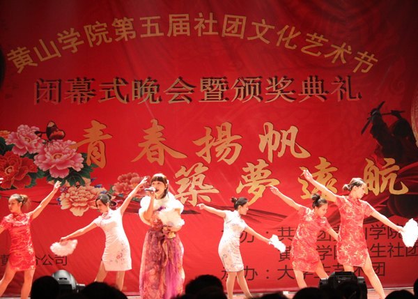 2011年12月3日晚,由黄山学院团委、学生社团联合会主办,大学生艺术团承办的第五届社团文化艺术节闭幕暨颁奖晚会在南区大学生活动中心礼堂隆重举行。
