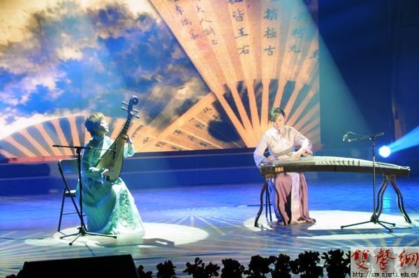 在启动仪式结束后的庆典晚会上,近年来在国内大赛中获奖的选手为来宾献上精彩的节目,展示了学校的办学实力和成果。东南卫视《欢乐合唱团》全国总冠军、“第九届加尔达国际合唱比赛暨音乐节”流行组比赛金奖、流行音乐学院“π组合”合唱团倾情演出的歌舞《我相信》,用动感的舞步和激情的歌声,充分展现了年轻人的青春活力;“金钟奖”“文华奖”古筝双料冠军任洁与“金钟奖”琵琶铜奖得主童莹合奏的传统名曲《春江花月夜》,像一幅工笔精细、色彩柔和的山水长卷,把观众带入如画美景;“金钟奖”流行音乐演唱铜奖得主张丹丹带领流行音乐学院的同学演唱了歌曲《就在今天》,唱响了南艺年青学子的自信与自豪。整台演出精彩纷呈,气势磅礴、充满着节日的喜庆气氛,拉开了南京艺术学院师生喜迎百年校庆的序幕。(范卫东)