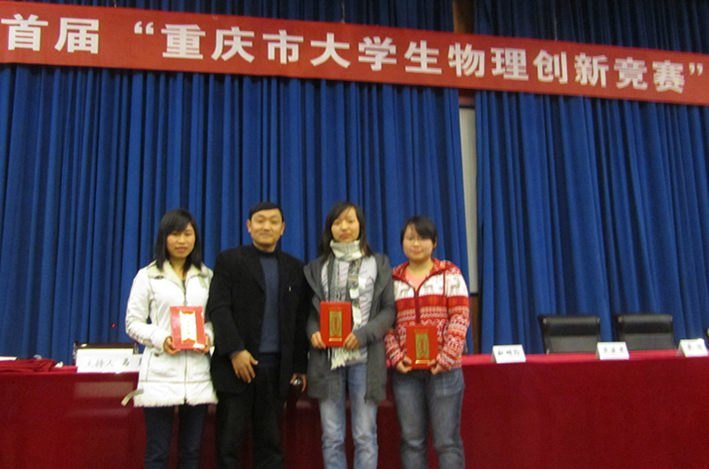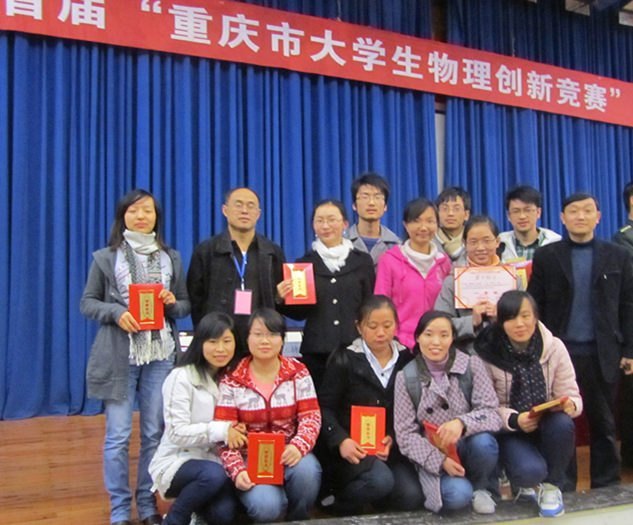 2011年12月2-3日,首届重庆市大学生物理创新竞赛决赛在重庆交通大学隆重举行。本次竞赛是由重庆市科协立项、重庆市物理学会主办、重庆交通大学承办的一项大规模的大学生物理创新竞赛。大赛共收到来自重庆市内14所高等院校的200余名在校大学生的142项参赛作品。经过各高校初评、竞赛专家组复评和选手现场答辩决赛,共评出一等奖18项、二等奖30项、三等奖45项。 重庆医科大学师生在实验教学管理中心的组织下积极参赛,全部参赛作品均进入竞赛,并最终获得一等奖1名和二等奖3名的好成绩,受到了竞赛组委会的表扬。其中甘平教授指导的“单色光对小鼠神经性肌肉萎缩的辅助治疗”获得一等奖;尚京川教授指导的“共振光散射技术和高效液相色谱法联用在药物分析中的应用”、甘平教授指导的“一种可视听植物“心声”仪器的设计及仿真”和“基于蓝牙技术的快速寻物系统” 获得二等奖。另外,甘平教授被竞赛组委会聘为评审专家组的评审专家。实验教学管理中心