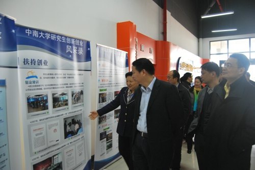 来访一行实地参观了中南大学创新创业教育成果展,大学生创业网、创业培训基地SYB、学生创业实训模拟基地、创业教研室、企业诊断室及大学生创业园等,与部分学生创业成员进行了交流。校创新创业中心主任杨芳向来访代表简要介绍了中南大学创业基地的基本情况。据介绍,目前中南大学在校学生已注册公司112家,其中18家获得国家科技部创新基金660万元的支持。