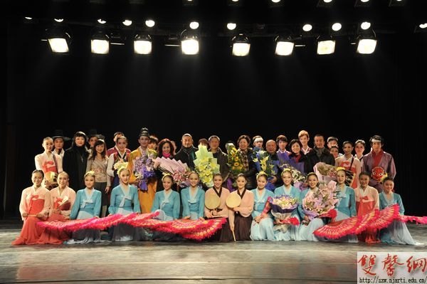 院长邹建平,党委副书记、副院长邱丽华与演员们合影留念