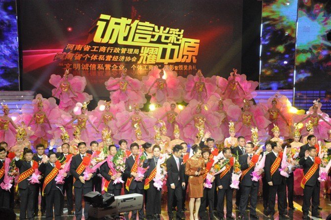 12月9日,中州大学音乐舞蹈学院应邀参加了由河南省工商行政管理局、河南省个体私营经济协会主办的《诚信光彩耀中原》“双百文明诚信私营企业、个体工商户”表彰暨颁奖晚会。