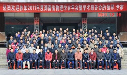 12月18日上午,由湖南省物理学会主办,中南大学承办的2011年度湖南省物理学会年会暨学术报告会在升华前楼101举行,中南大学副校长周科朝教授,湖南省物理学会名誉理事长王永久教授、理事长钟建新教授以及湖南省物理界相关领导、专家共150余人参加会议。