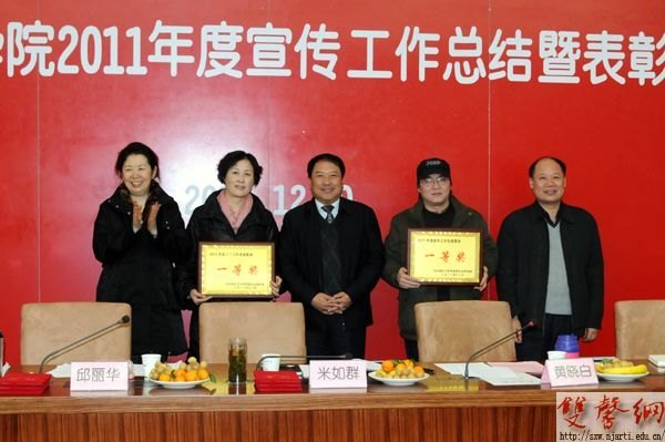 党委副书记、副院长邱丽华宣读了2011年宣传工作先进集体和个人的表彰决定。工业设计学院等15个先进集体,魏晓亮等10位优秀兼职宣传员,李国庆等15位校园电视台优秀记者,刘昳等10位大学生通讯社优秀通讯员受到表彰。