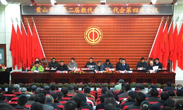12月31日,黄山学院第二届教代会暨第二届工代会第四次会议在逸夫图书馆二楼报告厅召开。本次大会听取并审议了《学校工作报告》、《工会工作报告》,讨论了《教学处工作报告》、《学校财务预算及执行情况报告》、《工会经费审查报告》、《提案工作报告》等四个文件。