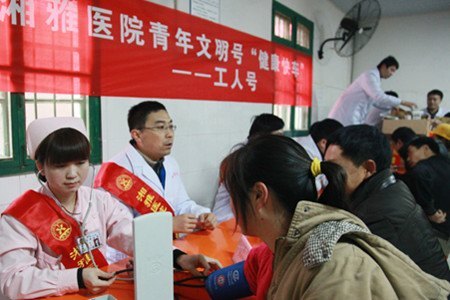 医院将充分发挥青年文明号、志愿者服务等特色帮扶机制,建立健全维护基层百姓健康的新机制;为农村进城务工人员等群体建立开通“绿色通道”,在同等条件下为他们优先提供一流的医疗服务;结合“志愿者基金”等形式,一定程度上有效缓解特困群众“看病贵”的难题;为每一位持有湘雅医院健康管理中心免费体检卡的工人建立电子健康档案,让他们随时了解自己的健康状况。