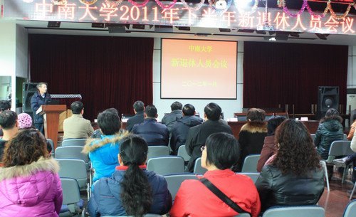 1月5日上午,中南大学在校本部老年活动中心多功能厅召开2011年下半年新退休人员会议。校党委常委、组织部部长韩清波,人事处、离退休工作处党政主要负责人及来自28个二级单位的74位退休老师参加了会议。