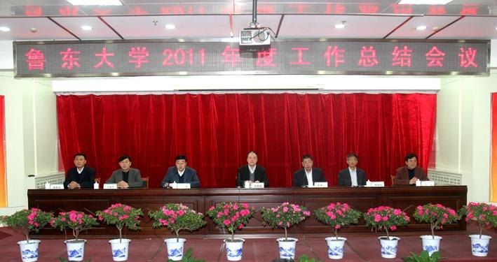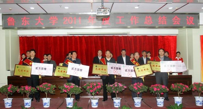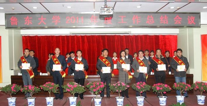 1月9日上午,鲁东大学在图书馆报告厅召开2011年度工作总结表彰大会,对2011年的工作进行全面总结,对过去一年来涌现出的先进集体和先进个人进行表彰。校党委书记毕宪顺出席会议并作重要讲话。校长李清山通报了鲁东大学2011年度工作情况。党委副书记郑明珍宣读了表彰决定。副校长李德民、刘焕阳,纪委书记徐祝永出席大会。会议由党委副书记乔万敏主持,全体副处级以上干部、先进工作者代表参加了会议。