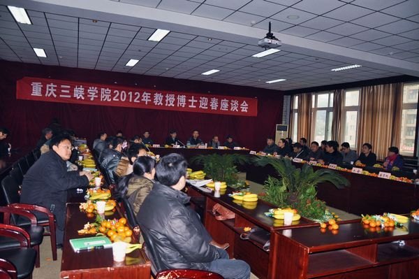 新年伊始,万象更新。在新春佳节即将到来之际,重庆三峡学院召开了教授、博士座谈会。在学校图书馆7楼,近40名教授、博士代表济济一堂,共同为学校的发展出谋划策,献计建言。学校党委书记许亚非,党委副书记、校长孙芳城,党委副书记崔广平,党委副书记、纪委书记唐建国,副校长祁俊生、谭明术出席会议。
