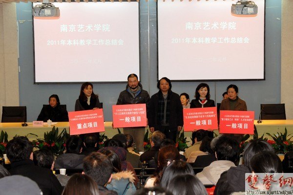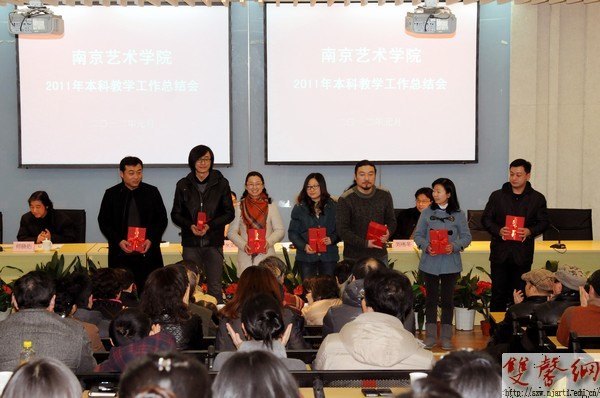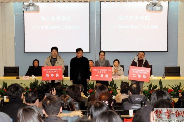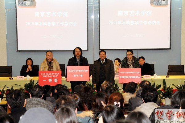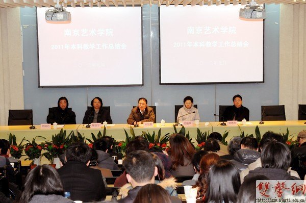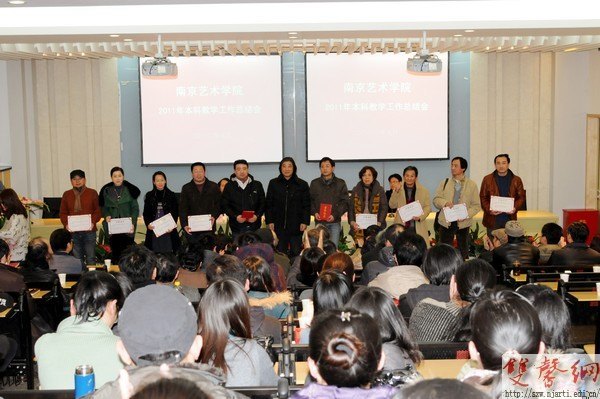 为总结经验、表彰先进,1月10日下午南京艺术学院“2011年本科教学工作总结会”在设计学院报告厅召开。党委书记米如群,党委副书记、副院长邱丽华,副院长陈世宁、刘伟冬、何晓佑等出席了会议。各二级学院院长、分管教学副院长、全体督导,各专业教研室主任、副主任,各教学实验室负责人,2011年校级以上本科教学成果获奖教师代表,全体教学秘书近120人参加了会议。会议由教务处庄元处长主持。