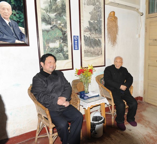 1月11日下午,黄山市委副书记程迎峰,市委常委、组织部长张永,市政协副主席、市委统战部部长杨震来黄山学院看望慰问民主党派离休教授黄澍、秦效成,黄山学院副院长胡家俊随同慰问。