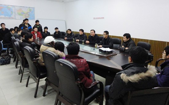 徐成钢一行还来到位于黄山区的黄山学院实习基地——黄山盛基药业有限公司看望慰问了化学系30多名实习生。徐成钢感谢盛基药业有限公司为黄山学院实习生提供的良好的实习条件,希望双方进一步加强交流与合作。他对实习生在实习过程中的良好表现予以充分肯定,鼓励同学们继续努力,认真做好实习后期总结工作。他还叮嘱同学们注意返家途中安全,并祝同学们过一个愉快祥和的春节。