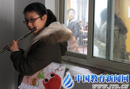 2012年1月13日,南京艺术学院2012年艺术类院校招生考试校考考场外,一名考生在临阵磨枪。