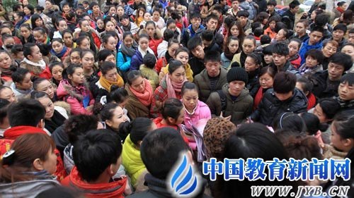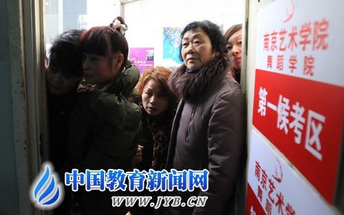 2012年1月13日,南京艺术学院影视学院门前挤满了参加2012年艺术类院校招生考试校考的考生。