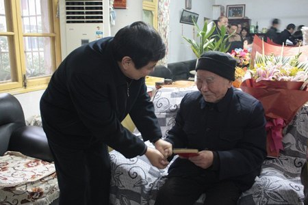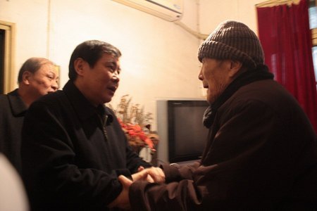 来到老红军蒲润的家中,高文兵书记关切地询问了蒲老的生活起居,并与老人拉起了家常。高文兵书记回忆起前几天与蒲老一起吃团拜宴的趣事,“蒲牢牙口好,我们到时候还要好好给老寿星安排一个百岁生日宴。”房间里顿时充满了一片欢声笑语。接过学校送来的慰问金,蒲牢很感动:“这么多年了,今天又这么冷的天,领导们还是一直来看望我,我很感谢组织,感谢大家。”领导们一一与蒲老握手话别,高书记扶住吃力起身想送大家出门的蒲老,“您别送了,组织也是您的家,您想说什么,需要什么,都来找组织。”