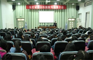 2011年12月30日,山东旅游职业学院举办东北证券专场推介会,本次推介会受到东北证券济南区各位领导的高度重视,运营总监程林岩先生亲自进行宣讲与推介。