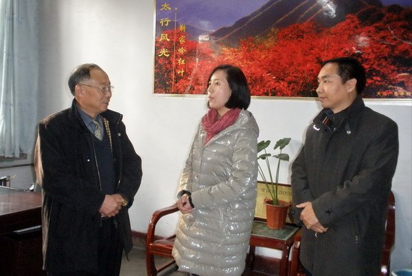院党委副书记、纪委书记赵长海(左)、副院长肖世才(右)与博爱县团委李书记(中)亲切交谈
