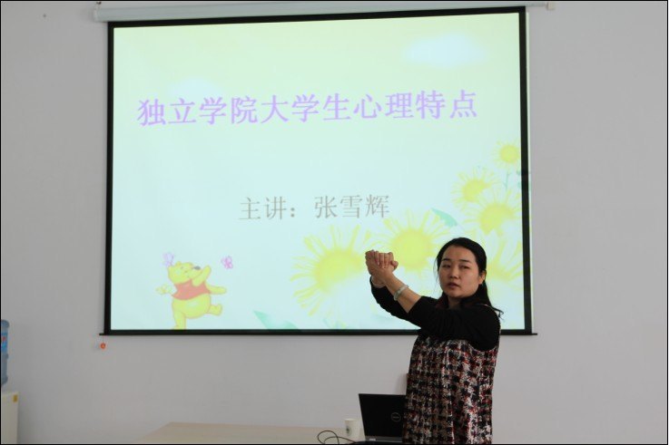 张雪辉主任结合现场提问和互动的方式,从学习、自我意识、人际关系和思想情感行为等方面分析了独立学院大学生的心理特点,指出心理成因受到家庭、学校。社会的影响,心理健康教育是现代社会发展的需要,是学校人才培养和建设和谐家庭的需要。她认为基层干部要尊重和爱护学生,发掘学生内在的潜能。同时,张主任还与基层干部分享了“如何尊重学生、真诚对待学生”、“如何做到遇事冷静和共情”等有助于解决学生问题的实用性技巧。