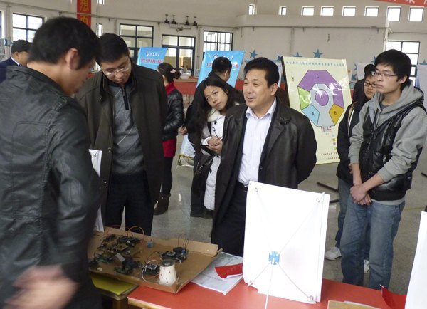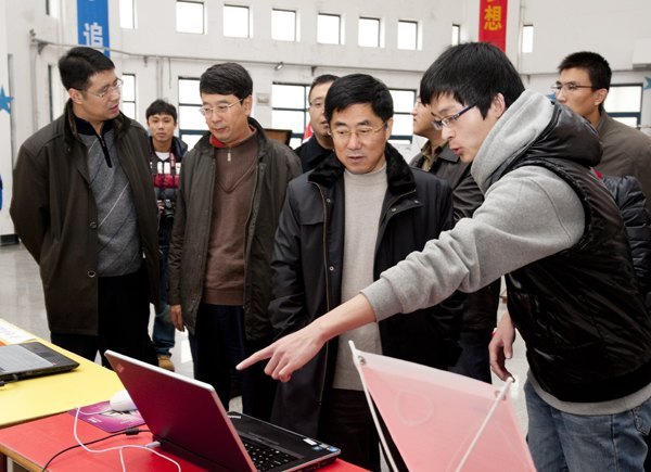在成果展现场,房绍坤校长、孙祥斌副校长认真聆听了作品的讲解,观看了作品功能展示,饶有兴致地对作品的原理功能、实际应用提出了问题和看法。房校长对烟台大学学生科技创新工作给予了充分肯定。他指出,今后烟台大学的学生科技创新工作要更加注重实际,善于实践,引导学生与校园生活实际、社会客观需求紧密结合;要加大学生科技创新的宣传力度,真正做到广宣传,深挖掘,扩大学生的科技创新参与度,夯实烟台大学学生科技创新工作的基础;要认真总结近年来学生科技创新活动的经验,做好今后几年的规划部署,在新的起点上继续推进烟台大学学风建设、人才培养质量不断提高。