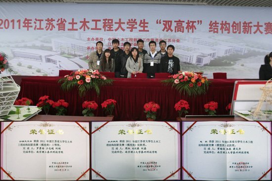 日前,从南京理工大学泰州科技学院土木工程学院传来喜讯,在2011年江苏省土木工程大学生“双高杯”结构创新大赛中,南京理工大学泰州科技学院土木工程学院选送的3件作品,1件获三等奖,2件获优胜奖。