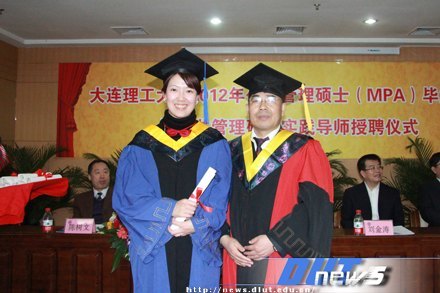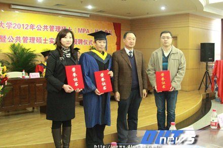 1月6日下午,大连理工大学2012年公共管理硕士(MPA)毕业典礼暨公共管理硕士实践导师受聘仪式在伯川图书馆多功能厅举办。大连市人力资源与社会保障局局长于德泉、大连市服务业委员会主任张跃良、大连市政府副秘书长王安栋、大连职业技术学院党委书记刘金涛、大连市纪委监察局副局长王瑞,办学合作单位代表朝阳市委组织部人才办主任陈孝政,大连理工大学研究生院常务副院长胡祥培教授、人文与社会科学学部部长洪晓楠教授、分党委书记杨连生教授等出席典礼。