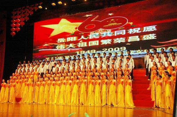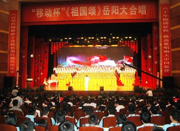 ?? 《祖国颂》大合唱比赛由中共岳阳市委、岳阳市人民政府主办,市委宣传部、市文化局、市广播电视局承办。来自全市不同系统的24家单位参加了比赛。经过27日的复赛,最终14家单位参加了这场决赛。