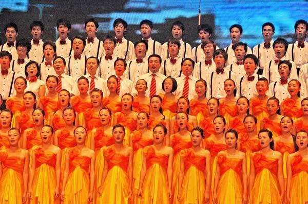 ??? 19时30分许,大合唱开始。表演单位(不参赛)市老干部大学合唱团的大型交响合唱《爱我中华》,以恢宏的气势唱出了全国56个民族兄弟姐妹一家亲和热爱祖国、建设祖国、期盼祖国强大的共同心望。