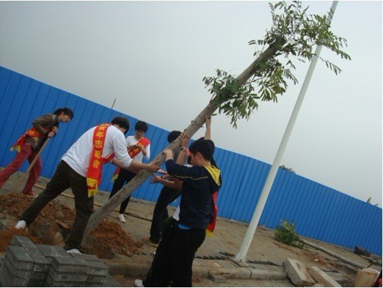 下午两点,尽管下着绵绵细雨,但是丝毫不影响师生学雷锋,为新华献力量的热情。各院系的辅导员老师,团委干部和学生们欢聚一起,准备着志愿者植树活动。在团工委负责人余老师的指挥下,合理分配植树工序,为每个环节配备人员,植树活动如火如荼地进行着。师生们齐心协力地将小树苗小心翼翼地放进已挖好的坑中,然后填上泥土。尽管微风习习吹来,但是不一会儿,师生们就已经大汗淋漓了。虽然在活动中衣服脏了,鞋子湿了,但看着自己亲手栽的树,都有满满的成就感,脸上露出了喜悦之情。