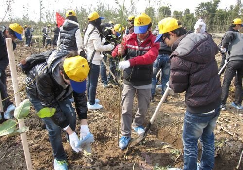 简短的仪式过后,志愿者们和集聚区管委会、媒体、企业、部队、学校等单位组成的植树大军一起向园地出发。现场,主办方准备好了1500多株桉树和300多株大叶女贞,同学们干劲十足,并为自己种下的这片林子取名“学子林”。参与此次活动的志愿者们表示,“台州是我们求学的地方,也算得上另一个故乡。我们很愿意在这里种下绿色的希望,与更多的新台州人一起,建设台州。”