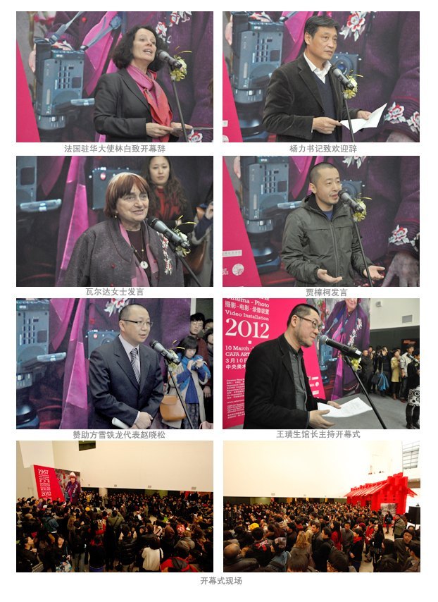 开幕式由美术馆馆长王璜生主持,法国驻华使馆大使白林女士、中央美术学院党委书记杨力先生、赞助方雪铁龙代表赵晓松先生以及此次展览的活动大使,中央美术学院特聘客座教授导演贾樟柯先生先后致辞,各自表达了对于阿涅斯?瓦尔达女士卓越的艺术成就以及她精彩非凡的艺术人生的赞美,并对展览的成功举办表示由衷祝贺。