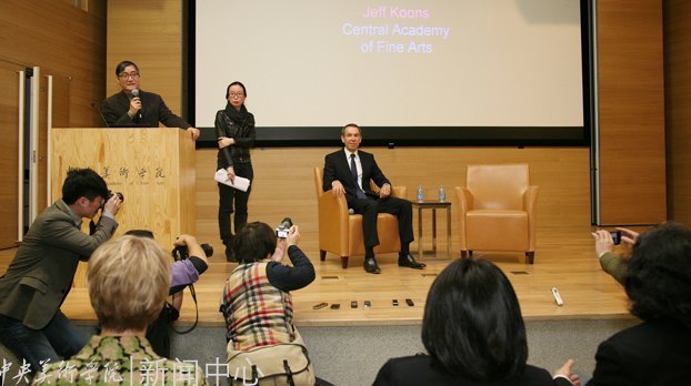 2012年3月21日晚六点,美国当代著名艺术家杰夫·昆斯在中央美术学院美术馆国际报告厅举办讲座,院长潘公凯主持讲座
