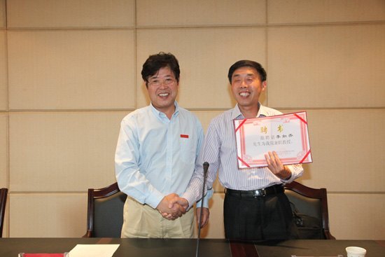 于院长首先代表学院宣布聘请李如齐教授为南京理工大学泰州科技学院兼职教授的决定,并为李教授颁发聘书、佩戴校徽。