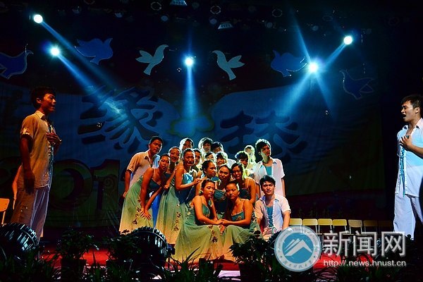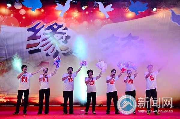 婉约过后,活力四射。相声《奋斗》道出了大学生们“不管是十年还是二十年,我们都要为梦想奋斗”的执着。现代舞《求职路上》演绎出了毕业生们拿着简历到处奔波的艰辛。学工办老师带来一曲高亢的《儿行千里》引得全场尖叫不断。小品《跟青春有关的那些事》以幽默的语言和风趣的表演逗得观众笑得前俯后仰。由老师和同学组成的七人,汇成了“我们永远是朋友”一行字,歌唱着《朋友》一生的承诺。