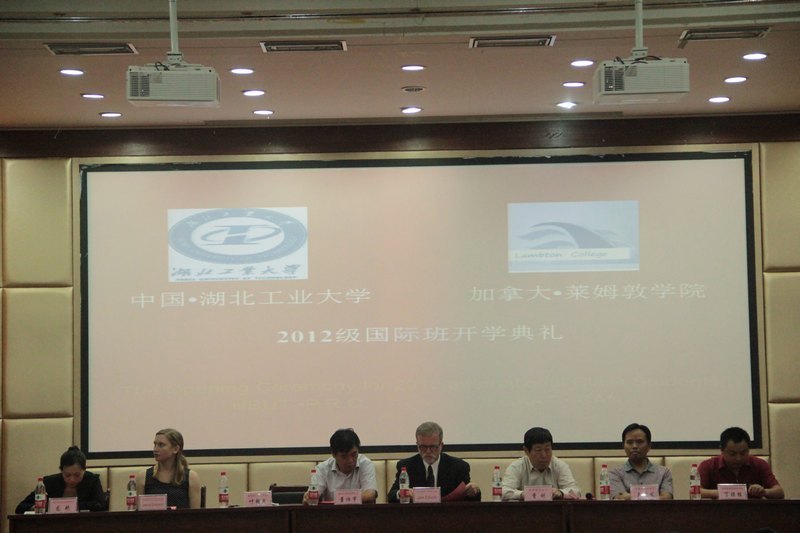 加拿大莱姆顿学院副校长Jim Elliott、国际部协调员Jenna Simpson于9月22日抵汉,并于23日下午出席了湖北工业大学管理学院中加国际班2012级新生开学典礼。出席本次活动的还有副校长董仕节、国际处及管理学院相关负责人。
