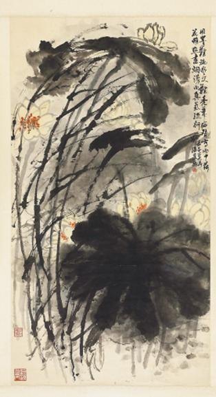 雨中荷花 149cm×81cm 1972年 刘海粟绘 南京艺术学院藏