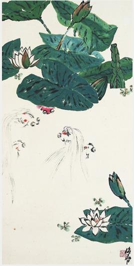 金鱼睡莲 94cm×48cm 1962年 谢海燕绘 江苏省美术馆藏