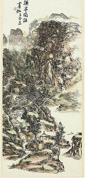 溪亭闲话 103cm×45cm 1955年 黄宾虹绘 南京艺术学院藏