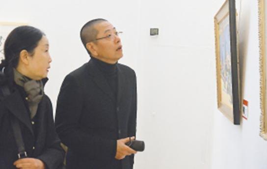 文化学者、著名油画家陈丹青携夫人欣赏展品。 宋德泳摄