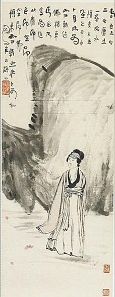 国画 宋词人物 91.5cm×34.5cm 1944年 吕凤子绘 张友宪提供
