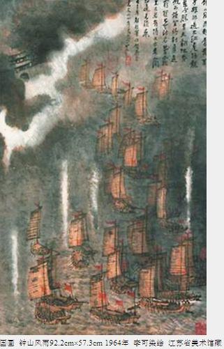 这一时段的“红色绘画”还应占有重要的一页:1940年2月15日,上海美专毕业生沈逸千,绘就了《毛泽东速写像》;红军长征后,黄镇(亦出于上海美专)完成了《长征组画》;抗战时期蒋兆和创作了影响深远的《流民图》;1949年5月27日上海解放,上海美专马承镳绘制了首幅《毛泽东主席油画像》,悬挂于大世界的塔楼上;苏州美专毕业生董希文创作了《开国大典》、《春到西藏》;李宗津创作了《东方红》、《强夺泸定桥》;费以复1951年与杨祖述、钱延康合作了《毛主席慰问伤员》;直接为时政服务的新型版画,有莫朴的《我们活跃在苏北》、《清算》,王式廓的《改造二流子》,王琦的《采石工》、《嘉陵江上》,张树云的《上前线》,等等。绾上种种,南艺先期阶段的绘画作品,堪称多姿多彩,可以说,从一个方面为人们提供了读史的形象课件。